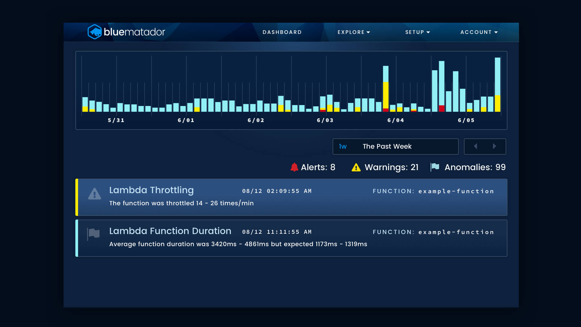 We’ve gone over how to set up Blue Matador to monitor your Lambda Functions, what kinds of events Blue Matador automatically configures and maintains, and how these events can be used to troubleshoot your entire system.