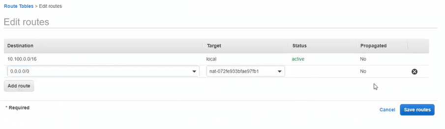 Adding the NAT gateway route for 0.0.0.0/0