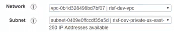 The first 8 subnets are the ones that matter, each name prepended with “rslf-dev-”. There are 4 private and 4 public subnets total, split across 4 availability zones.