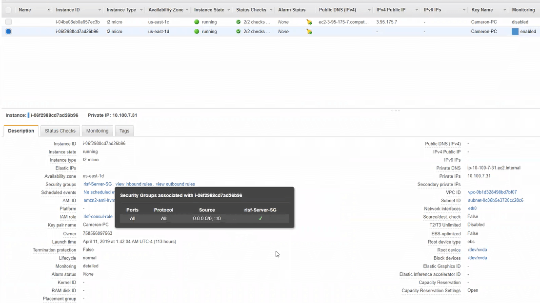 Solution #1: Make sure instances are in the right subnet. We never would have seen the other problems if the test instance was in the right subnet.