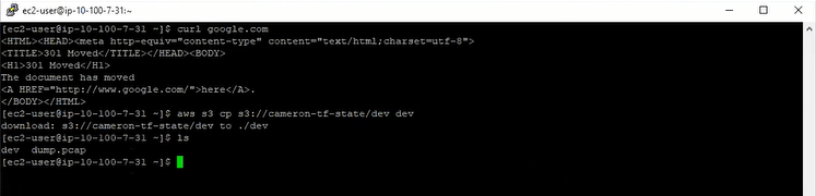 At this point, we confirmed that the internet connectivity was not scoped to AWS, not impacted by the presence or absence of the S3 gateway, and that the instance was accessible via private subnets (because we were SSH’d to it) but couldn’t get access to the public internet.